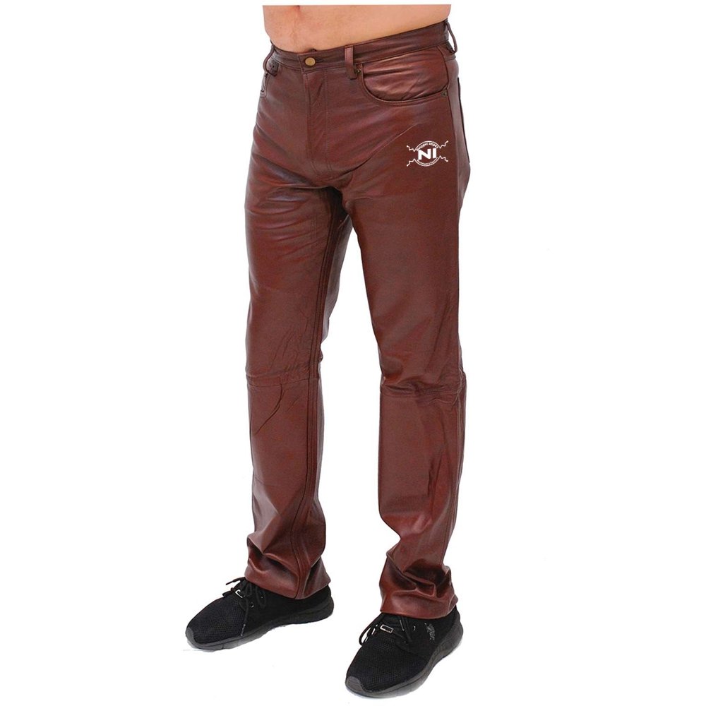 Our softest leather pants available in a rich chocolate brown leather. A premium quality 5 pocket jean style with YKK zipper and a soft nylon lining. Limited sizes. (d)