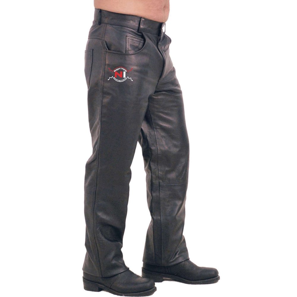 Premium five pocket lambskin leather pants. Features wide belt loops, zip fly, button waist and nylon lining. Exclusive.