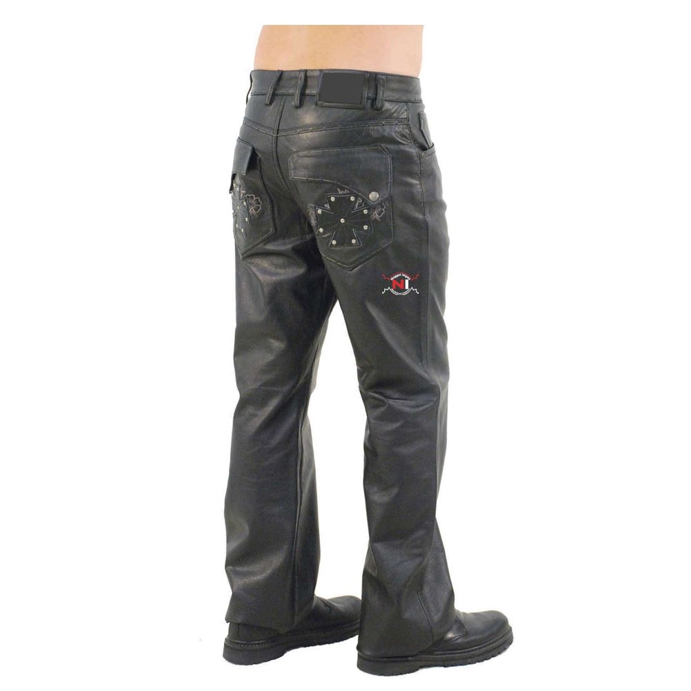 Our very BEST buffalo leather pants. Single panel front with YKK zipper, soft buffalo leather, classic five pocket style and nylon lining.